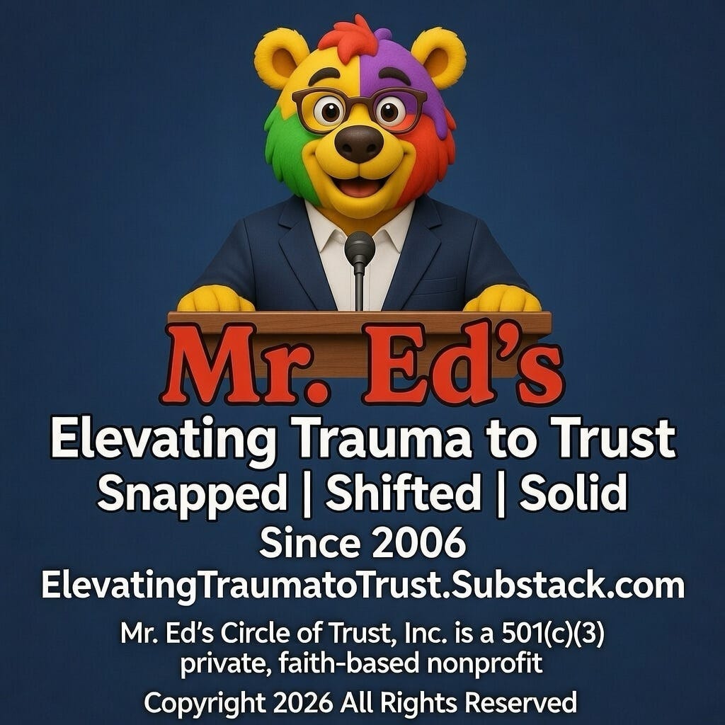 Today, in 2026, Mr. Ed’s Circle of Trust, Inc. stands at the threshold of its next powerful chapter. Under the bold new branding of Elevating Trauma to Trust: Snapped. Shifted. Solid., we continue to guide individuals, adoptive families, and communities from the raw fracture of trauma through intentional rebuilding to unshakeable wholeness.
